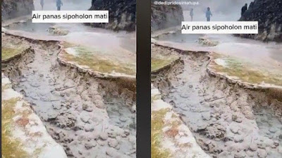 Dikutip Sabtu (1/10/2022), terlihat cekungan tempat aliran air panas tersebut kering. Air sama sekali tidak mengalir di cekungan itu.